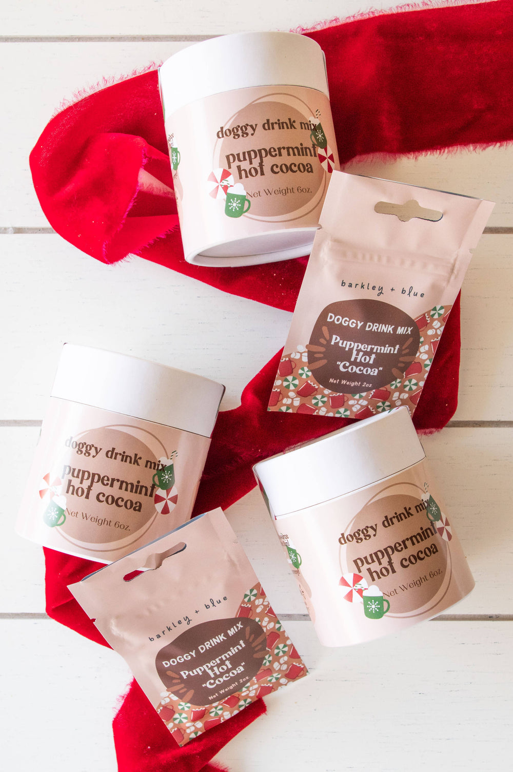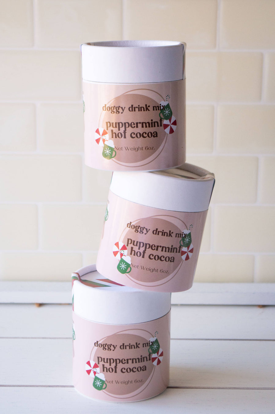 Treat your furry companion to the joy of the season with our Puppermint Cocoa Doggy Drink Mix. It's a delightful way to share the holiday spirit and ensure your pet's tail keeps wagging with happiness. Each ingredient offers unique benefits - goat milk provides calcium and probiotics for a healthy digestive system, turmeric boasts anti-inflammatory properties, cinnamon adds a warm touch, The goat milk in this drink mix is formulated with probiotics to help your pup’s gut health! We’ve added turmeric in as well for anti-inflammatory benefits. Ingredients: Goatmilk powder, carob powder, peppermint leaves, ground ginger, turmeric, cinnamon. Shelf stable for up to one year. Mixes are available in 2oz bags or 6oz canisters. Both products are made with eco-friendly, plant-based, biodegradable packaging.
