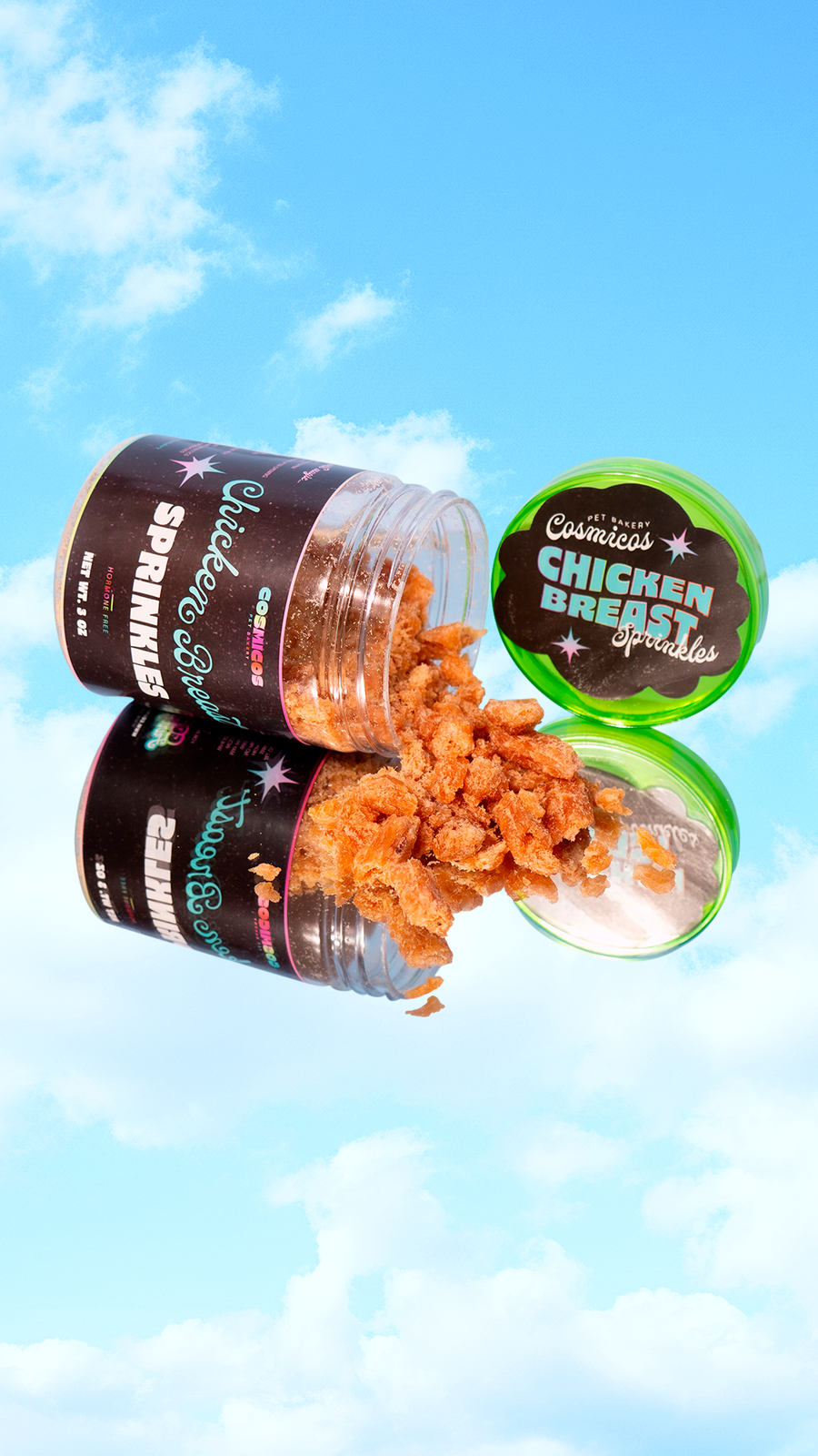 Dehydrated 100% Chicken breast sprinkles . 3oz. Perfect for Cats and dogs.
