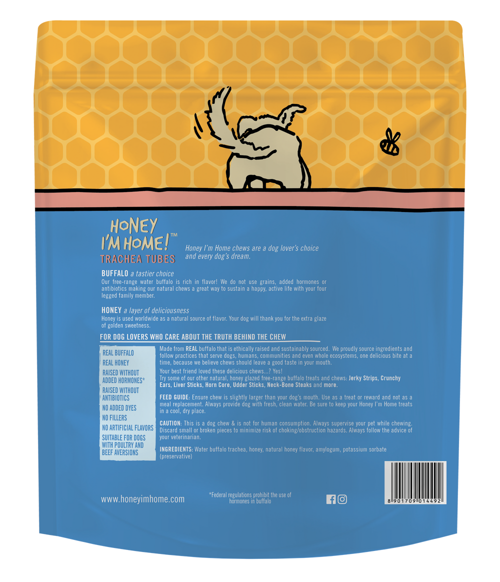 We only use simple, easy to read ingredients like Buffalo and Honey. You can be confident that your dog is only getting what it needs from the best dog chew possible.