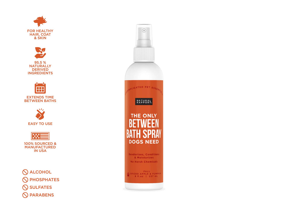 Keeps your pup cuddle-friendly between trips to the tub — but it’s not just about fragrance; it’s about coat texture, shine, and the air- quality of your snuggle. Not only is this product a triple threat: deodorizing, moisturizing and conditioning, but what truly makes our Between Bath Spray different is this: it’s 95.5% derived from natural & plant based ingredients so you can spray (and overspray) guilt free knowing that it’s free from alcohol and harsh chemicals. The fresh fragrance is just an added bonus!