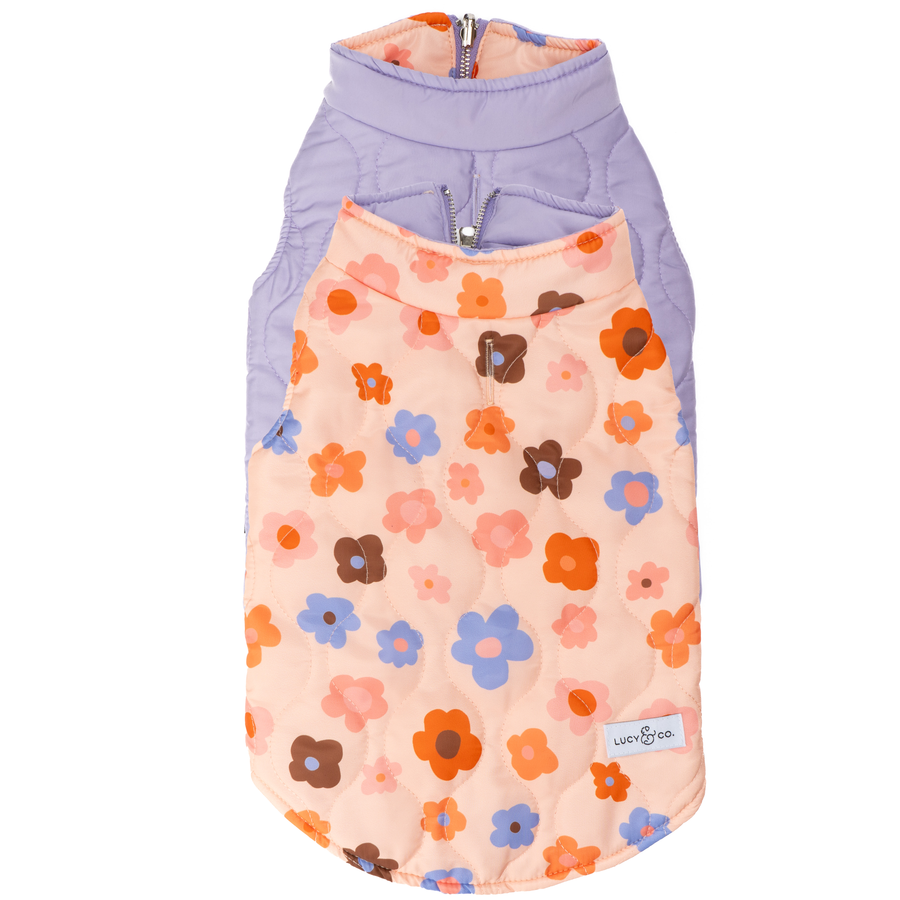 Totally groovy, and totally cozy! Our fan-favorite puffer vest has been reinvented for dual-sided reversible action and quilted coziness - it's cute, cozy and perfect for cooler days! Mix winter warmth and classic style for a walk in the park with this super cute puffer vest dog jacket. We had the on-the-go dog in mind when we designed these: zip closures and a leash clasp opening on the back side of the vest make getting out the door easy.
