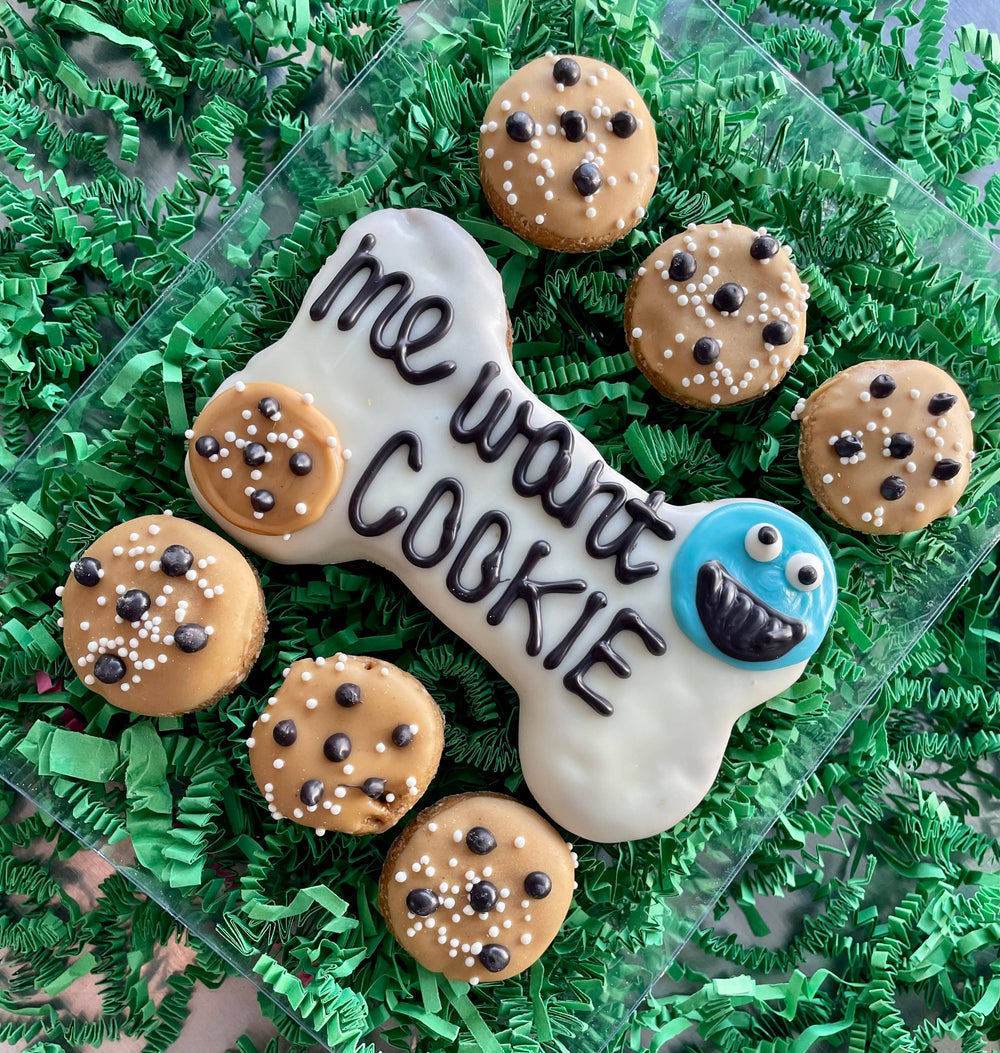 These adorable me want cookie 🍪 bones have hand designed Cookie Monster face and cookie! Too stinking cute! These smell YumYum like all our yumyums do!