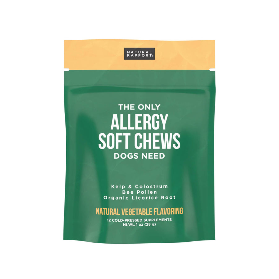 Only the first sneeze is cute. When your pup is suffering from allergies, it isn’t. Our Allergy Soft Chews use powerhouse natural ingredients like colostrum, kelp, and bee pollen which are known to alleviate your furry friend’s itchy skin, hair loss, sneezing, wheezing, and watery eyes all while helping provide essential vitamins & minerals and supporting enhanced immune function.
