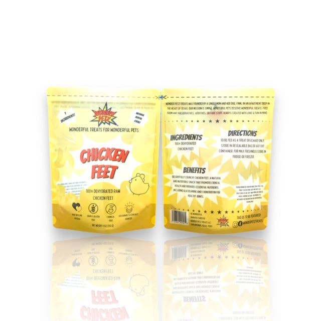 Treat your furry friend to the ultimate crunchy delight with our Chicken Feet dog treats. Packed with protein, these all-natural treats are sourced from high-quality chicken and carefully dehydrated to retain their flavor and nutrition. With no artificial additives or preservatives, these chicken feet are a great source of natural glucosamine and chondroitin, promoting joint health. Each 4oz. bag provides your pup with a satisfying and wholesome chewing experience. Give your canine companion a taste of goodness that supports their well-being and dental health.