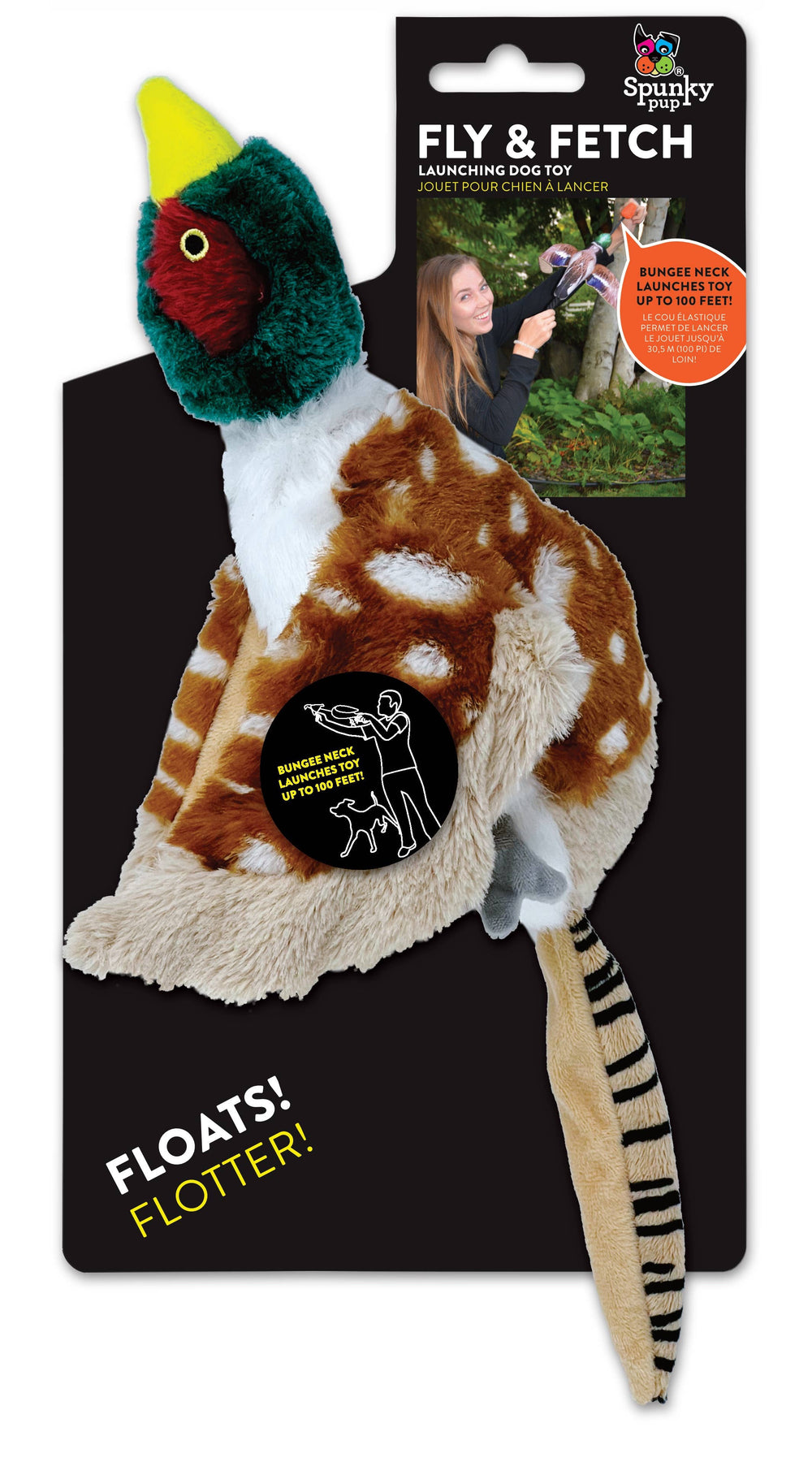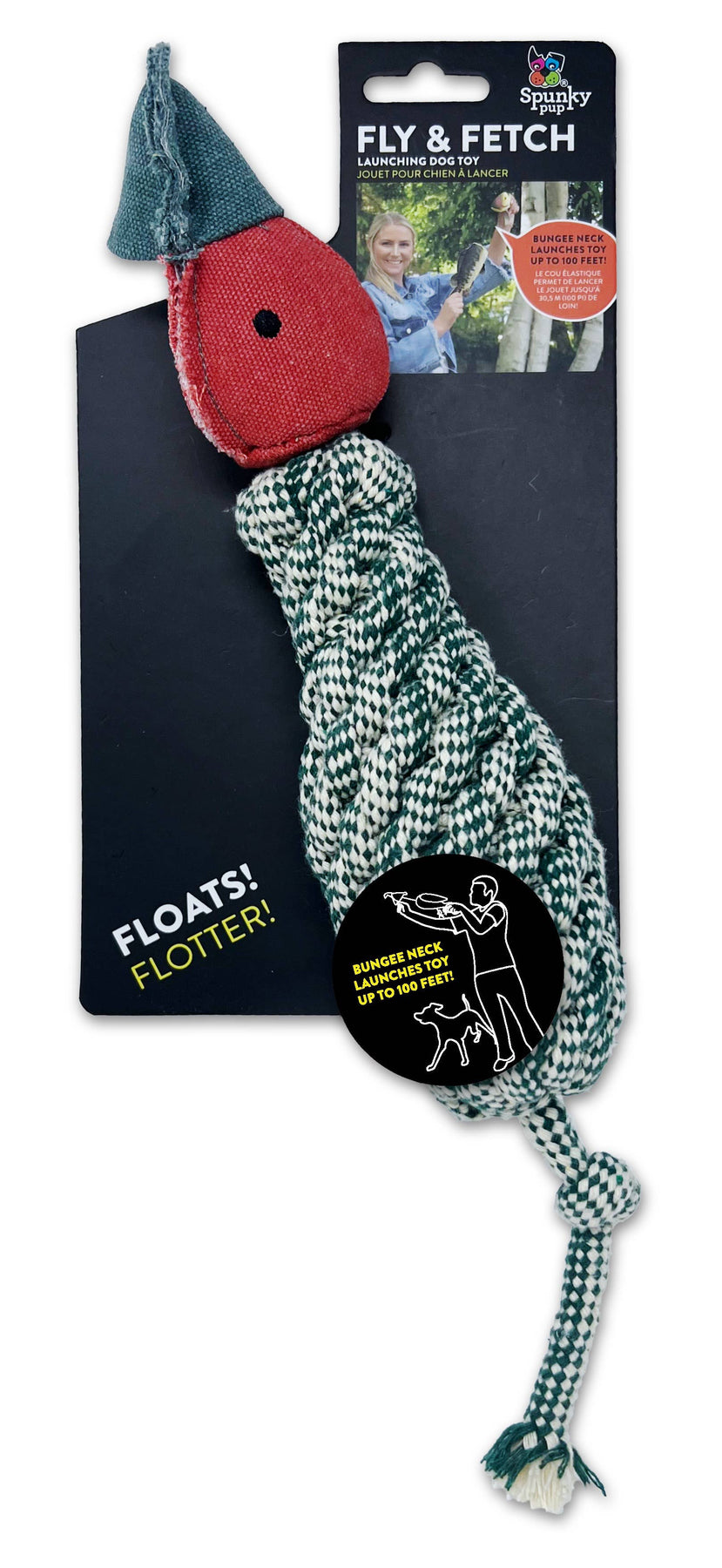 Our Fly & Fetch Toys will be your dog’s new flying friend! Stretch and release the built-in bungee cord to launch up to 100 feet. Floats. For use as a fetch toy - not designed as a chew toy.